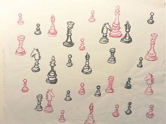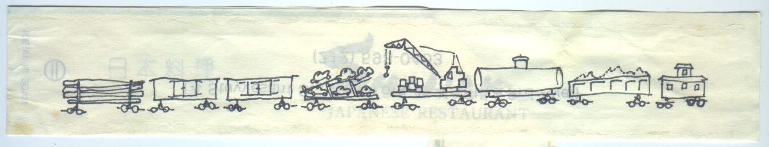 Chess pieces Dapper thumbprinted gentleman Freight train doodle on chopstick wrapper Self-portrait with dodecahedral bug bite The Woozy Labels DiagramsElementary particles