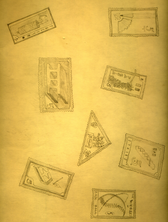 Collage stamps Eight stamps Fascism 5 euro Fast Pasta 5 lire Pencil technology today Punch and Judy 5 cents Saturn V The Cinder Block 5 cents The Pencil Sharpener 5 pence The Safety Match 5 cents The Stairway 5 cents The World of Base-ball 5 rial Labels ScribbleText