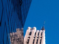 Sun reflecting off bank of windows