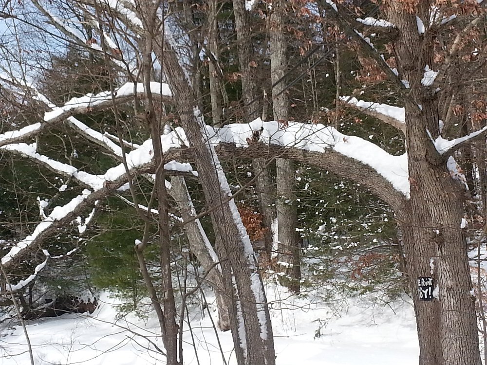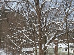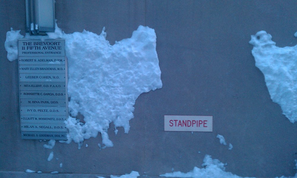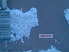Work boots Snow-laden arched branch Snow-laden tree Snow shelf Patriotic grave Wall snow Snow on car window Air conditioner Broadway near Houston Half-buried motocycle Subaru Snow on grate Labels CloudsIcicles